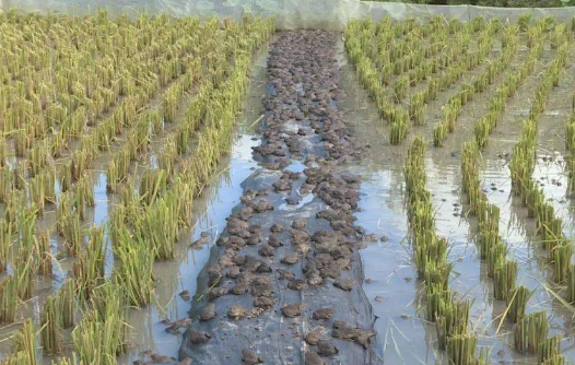 养殖青蛙的稻田里升起一片白色的铁丝网,四周也围起铁丝网,陈春元介绍道,青蛙是害虫的天敌,而鸟儿却是青蛙的天敌,围上铁丝网不仅是为了保护青蛙防止被鸟儿偷食,还有防止长大的青蛙蹦跳逃出去。说到这,陈春元非常自豪:“今年我们经费充裕了些,将支撑铁丝网的竹竿都换成了铁杆支撑,不仅提高了铁丝网的稳定性,还延长了使用寿命。”