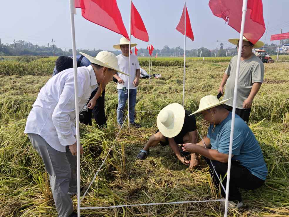 此次演示活动以“技术讲解+实操演示+科学测损”为主线,精心设置三组水稻收获方式对照试验(全喂入式高留茬、全喂入式低留茬、半喂入式),精准破解机收减损实操难题。专业技术人员结合湘潭本地水稻品种特性与农机作业实际,对三组收割方式的减损原理、操作规范进行了专题讲解。同时,围绕不同种植条件下的作业案例,针对“留茬高度调控”“不同地块湿度下如何调整行进速度”“机具日常保养对减损的影响”等问题进行现场答疑,帮助参会人员清晰掌握“为何减损、如何减损”的核心逻辑,为后续实操打下坚实理论基础。作业演示结束后,技术人员人工捡拾遗漏稻粒、筛选破碎籽粒,精准核算机收损失率,不仅让减损成效有了量化依据,也为今后全市粮食生产作业方式选择与机具参数优化提供了实践参考。