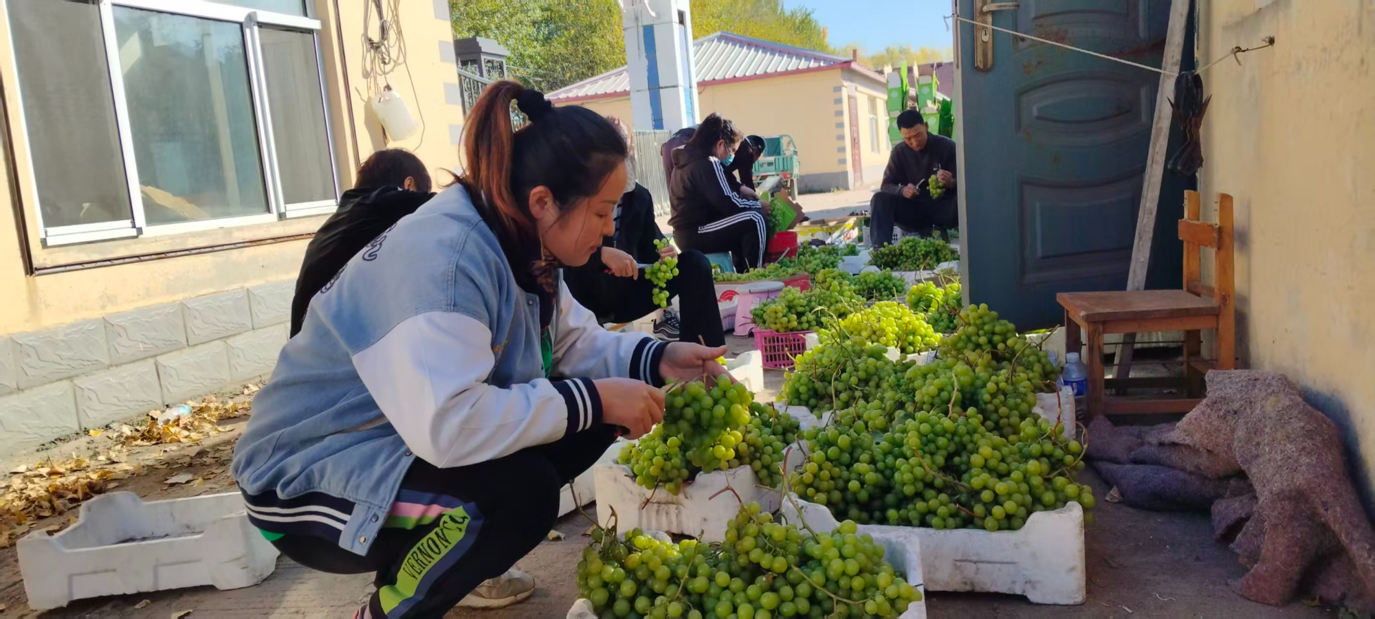 近日,走进佳木斯市郊区莲江口镇葡萄园,一串串饱满多汁的葡萄挂满枝头,阵阵果香扑面而来。
