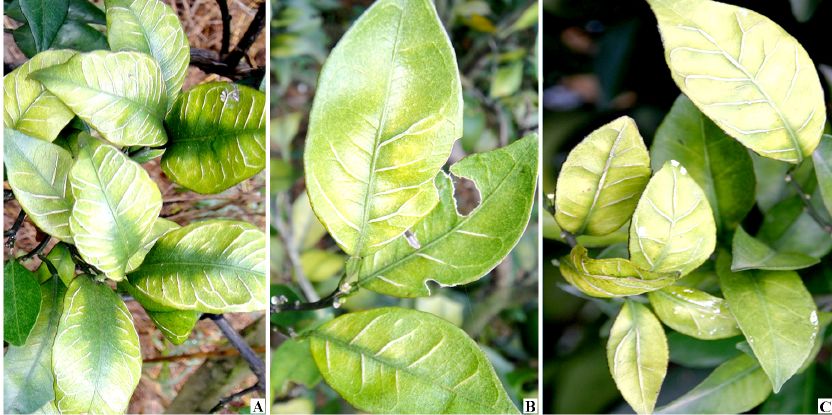 此外,像根腐病、线虫病等可损害根系的,地上部分也会有类似症状。当然,柑橘衰退病等病毒病也可造成叶片主、侧脉附近明显黄化,但机理不同,这里就不展开讨论了。