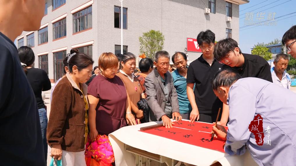 在定陶区冉堌镇的广场上,锣鼓喧天,热闹非凡,辛勤劳作了一年的农民群众聚在一起欢庆丰收节。大家用山药、花生、南瓜等农作物拼出“五谷丰登”晒秋图,现场喜庆的秧歌、竹马、舞狮等民俗表演轮番上演,掌声不断。随后,激烈的拔河比赛展现力量与协作,书法爱好者现场挥毫,写下“五谷丰登”“庆农业丰收”“享美好生活”等一幅幅饱含丰收喜悦之情的书法作品,传递出对丰收的喜悦和对美好生活的向往。