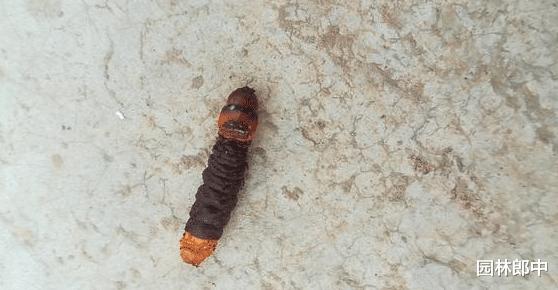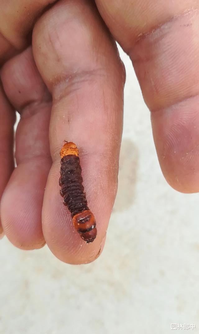 药剂喷施之后不久,就有许多红色的小虫子从树干上的虫洞中钻出来,看到红色的小肉虫,经过对比之后,发现原来是木蠹蛾的幼虫!