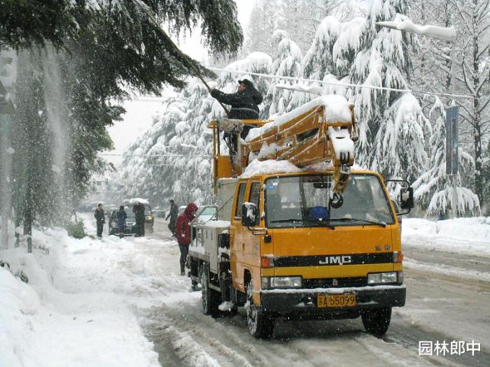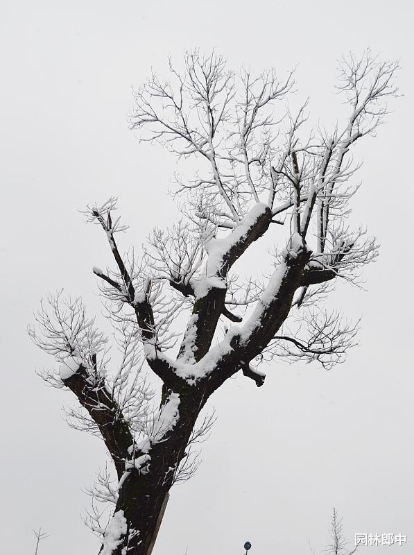 (2) 在下雪后,要让工人利用工具将枝杈上的积雪敲打掉,减少积雪对于苗木枝干的伤害,同时避免积雪融化时对枝杈处树皮组织的伤害。