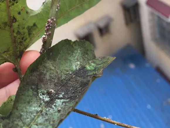 花期、出新梢时重点防,药剂可选择高氯+噻虫嗪,吡虫啉等,悬挂篮板有诱杀作用。