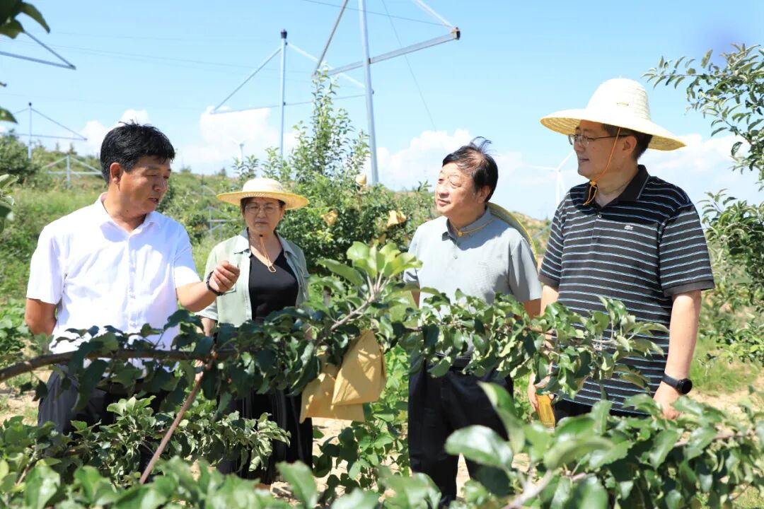 西农罗军和“头雁”导师团成员邹志荣、汪月琴实地考察麻黄梁镇山地苹果种植情况
