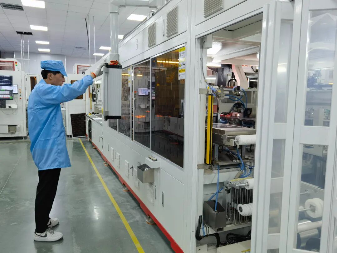 走进占地4.5万平方米的现代化厂房,全自动分档、装框机器人与180名技术工人协同作业的场景令人瞩目。据新疆国晟企诚新能源有限公司工艺经理李彬介绍,该生产线已实现全自动化,采用自动焊接、层叠、成品EL外观检验以及高温真空封装等一系列工艺流程。满产情况下,16秒即可生产一块210N型双玻大尺寸组件,该产品具有衰减率低、转换效率高、温度系数低、弱光效应优异、双面率高、度电成本佳等特点,适配从沙漠到高海拔地区的全场景应用需求。
