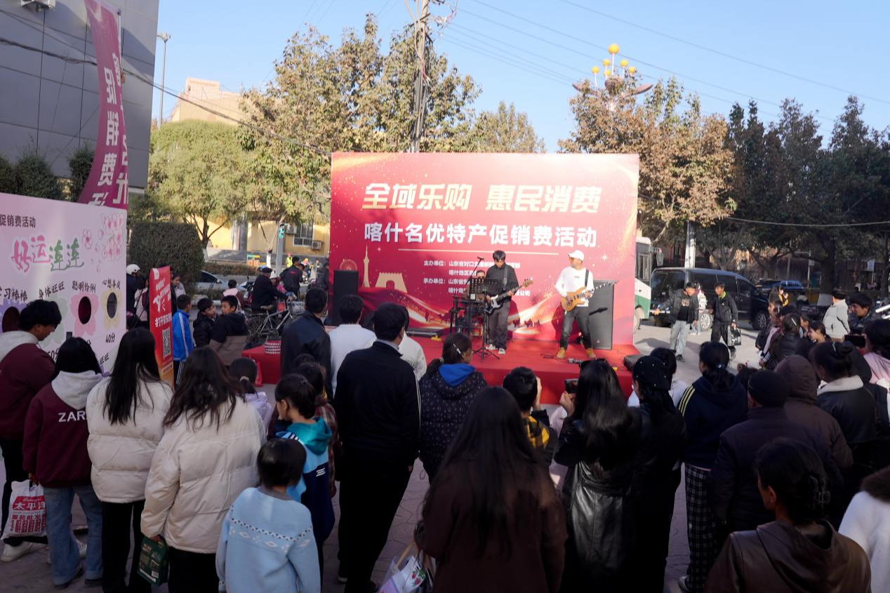 11月22日至23日,全域乐购·惠民消费——喀什名优特产品促销活动走进新疆英吉沙县,以“线下展销+线上直播”的模式拓宽特色产品销售渠道,让各族群众在家门口享实惠、淘好物,激活县域消费活力。