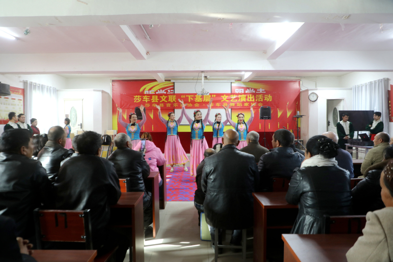 近日,莎车县十二木卡姆歌舞团走进伊什库力乡,开展“我们的中国梦——文化进万家”文艺下乡活动,将一道道丰富多彩的“文化大餐”送到村民家门口,让广大群众在欢声笑语中感受文化魅力,共筑精神家园。