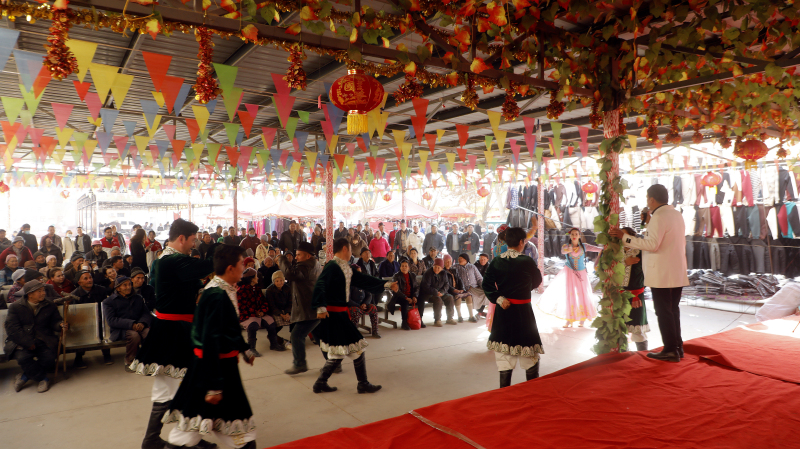演出结束后,演员们又走进乡里的巴扎,为赶集的群众带去了一场“快闪”表演。欢快的鼓点、优美的舞蹈,吸引不少村民驻足围观,原本热闹的集市更添几分艺术的气息。