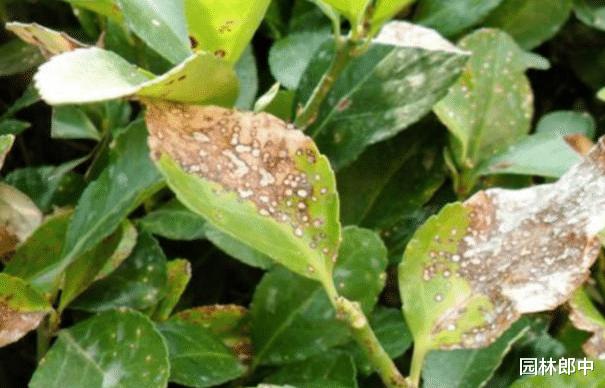图为黄杨叶片发生病害