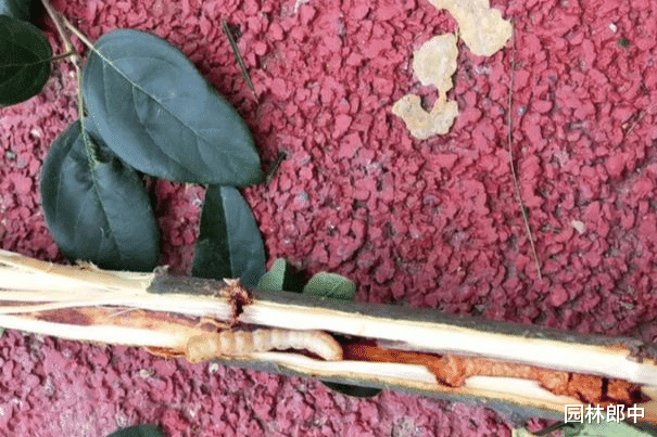 图为苗木枝干内的蛀干害虫天牛幼虫