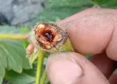 髓心已空,维管束变成红褐色还有菌脓 图片来自草莓小哥