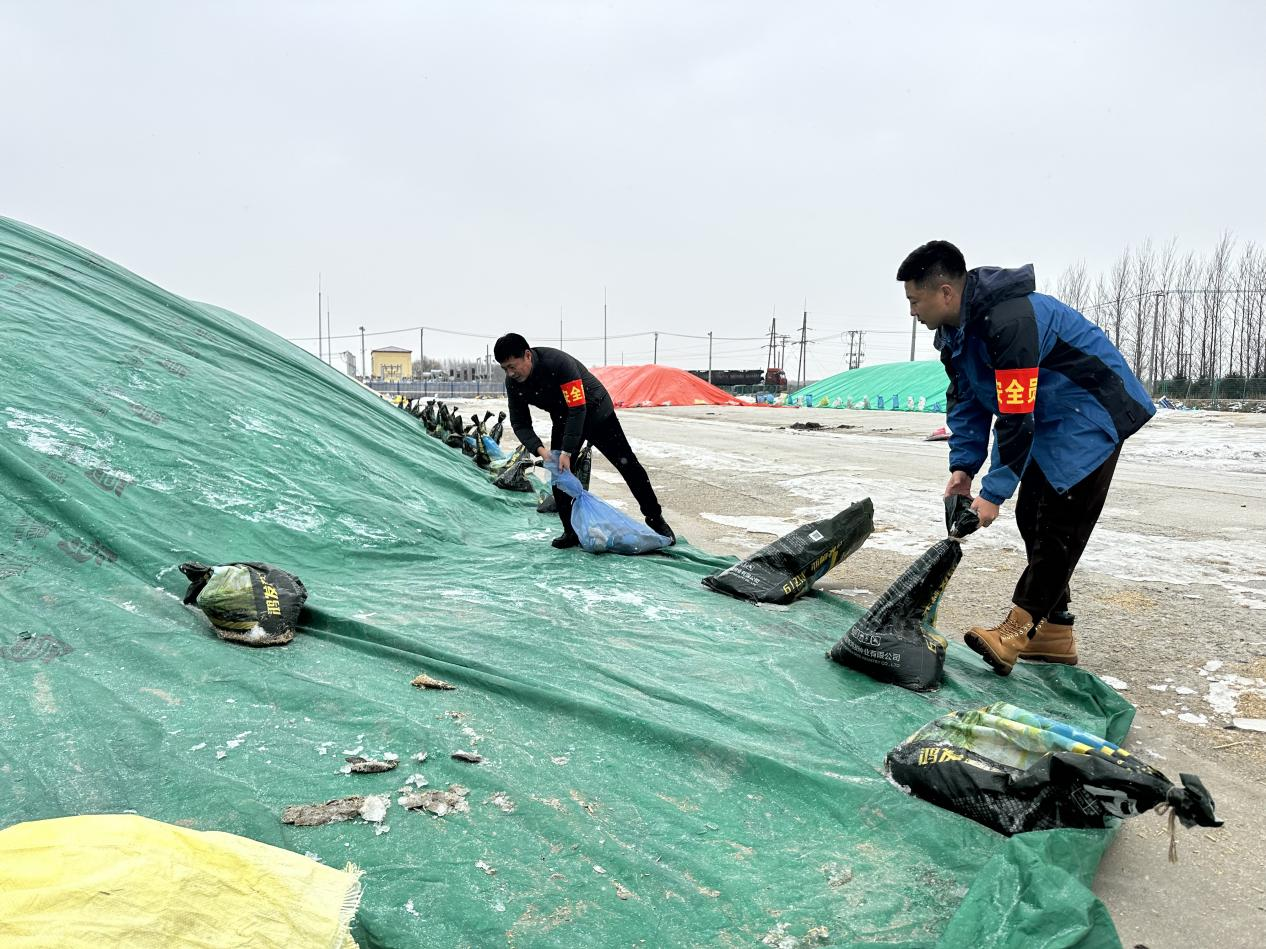 第六管理区积极组织人力、机车到晒场及临时储粮点进行清雪,及时将晒场排水沟内积雪进行清理,对粮食上遮盖的篷布统一整理,防止雪水进入粮堆,出现粮食霉变问题。同时,工作人员通过微信、广播等方式,及时向种植户推送雨雪、降温等气象预警,并结合天气变化规律,科学指导种植户针对性采取粮堆通风、覆盖加固等防护措施,构建起“提前预警、精准指导、快速响应”的粮食安全保障体系。
