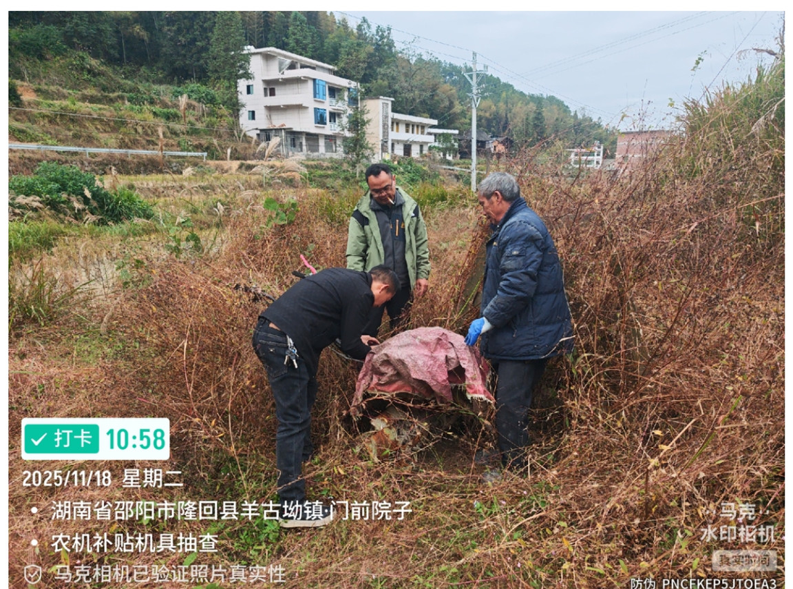 连日来,湖南省邵阳市隆回县农业农村局组织人员接续开展农机补贴机具抽查,确保农机购置与应用补贴政策落地见效和资金安全。