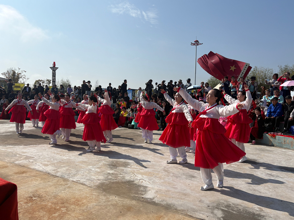 文艺演出环节更是精彩纷呈,为现场观众带来了一场高品质的文化惠民大餐。铜管合奏《没有共产党就没有新中国》、独唱《伽倻琴声》《我们的中国梦》、长鼓舞《红太阳照边疆》、舞蹈《欢庆》等精彩节目轮番上演,赢得现场观众阵阵掌声与喝彩。