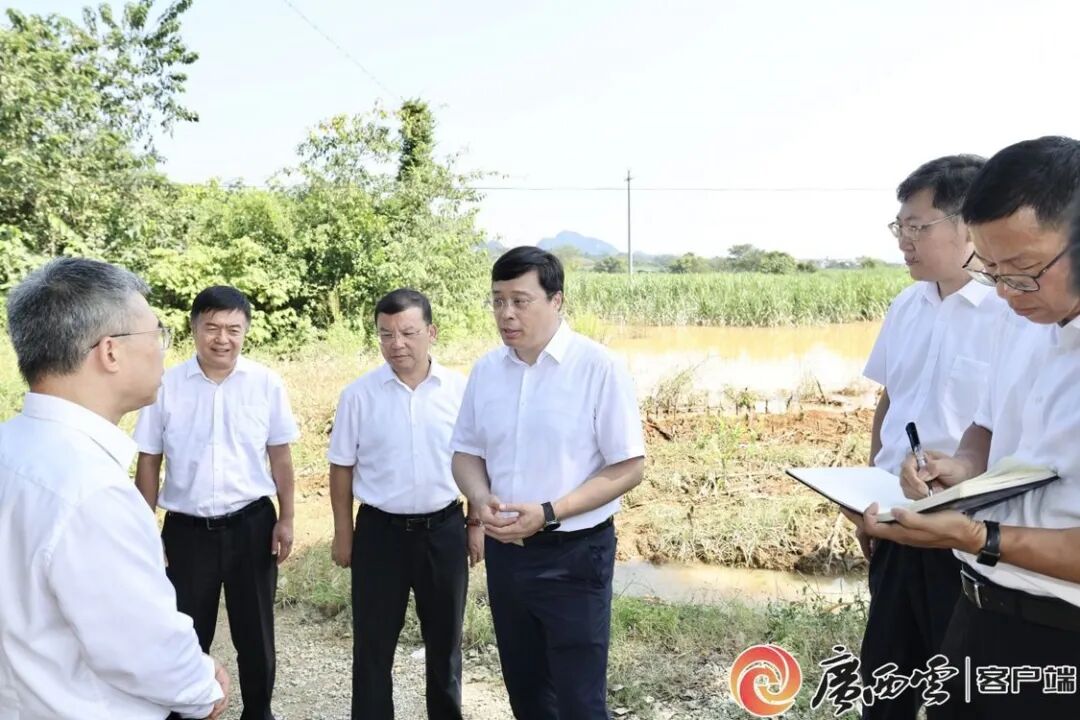 10月9日,自治区主席韦韬赶赴崇左市,调研灾后生产生活恢复工作情况。在龙州县龙州镇自清村新村屯甘蔗田,韦韬现场察看倒伏甘蔗和积水情况,听取农作物受灾情况汇报,要求有关部门进一步做好灾情核报工作。广西云-广西日报记者 邓华 摄