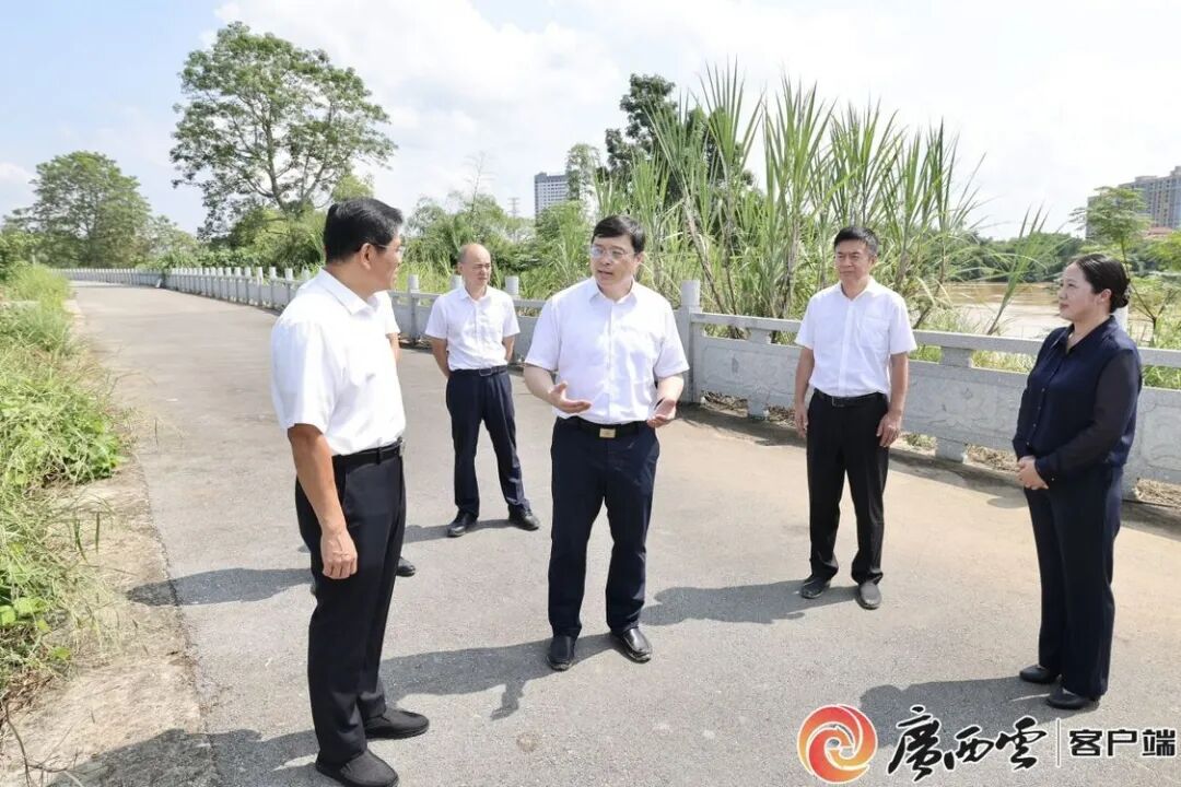 韦韬来到崇左市江州区教场防洪堤,察看水情,与各有关部门现场会商,研究崇左市城区防洪排涝基础设施规划建设,谋划进一步提升应对灾害的安全韧性能力。广西云-广西日报记者 邓华 摄