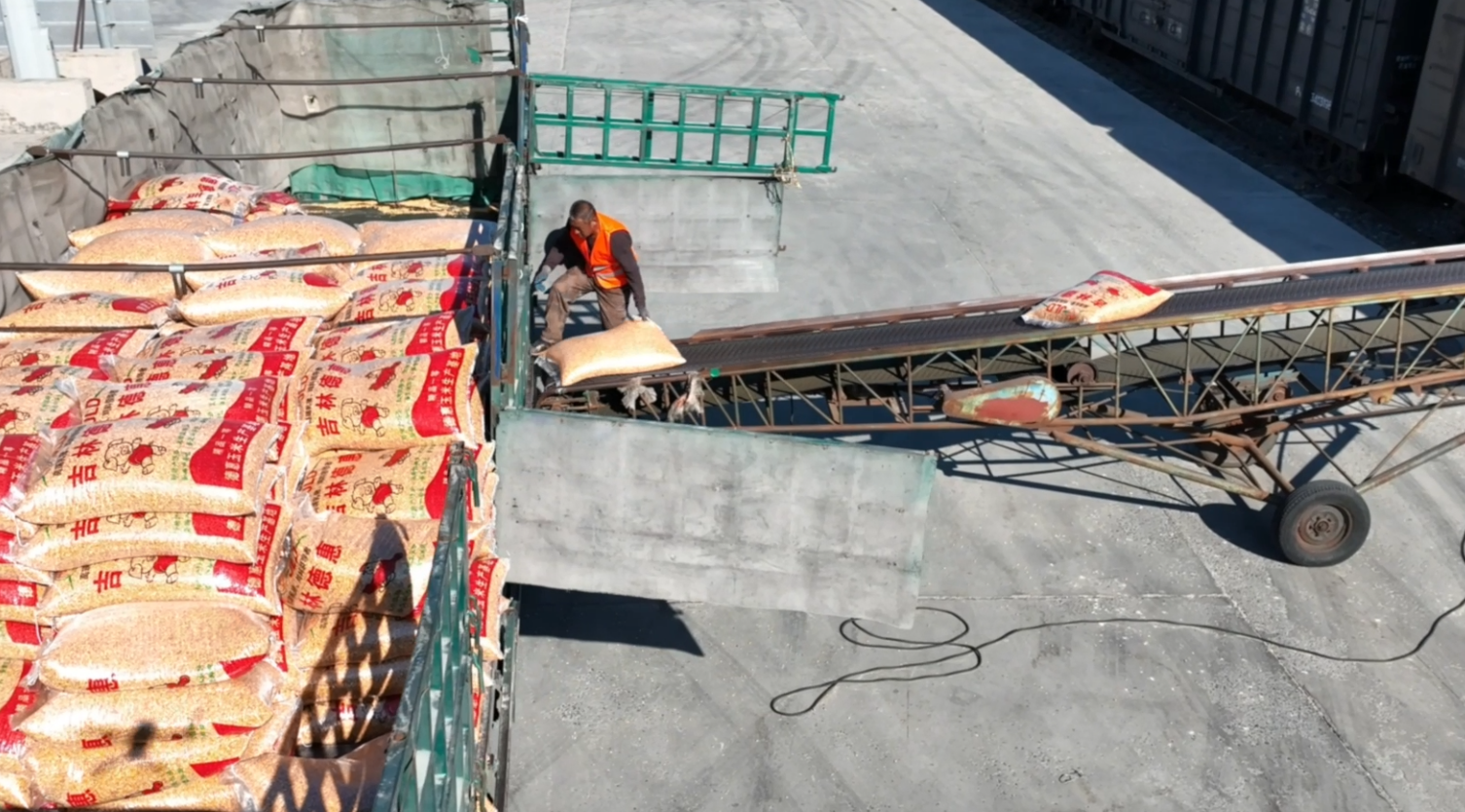 粮食装运现场(央广网发 长春铁路物流中心供图)
