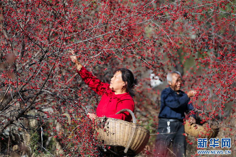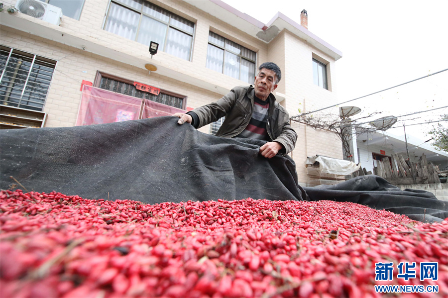近年来,河南省三门峡市卢氏县因地制宜,积极引导群众调整农业产业结构,做大做强优势特色产业,不断增加山茱萸产业发展“含金量”,通过产业振兴,带动群众增收致富,助力乡村振兴。新华网发(聂金锋 摄)