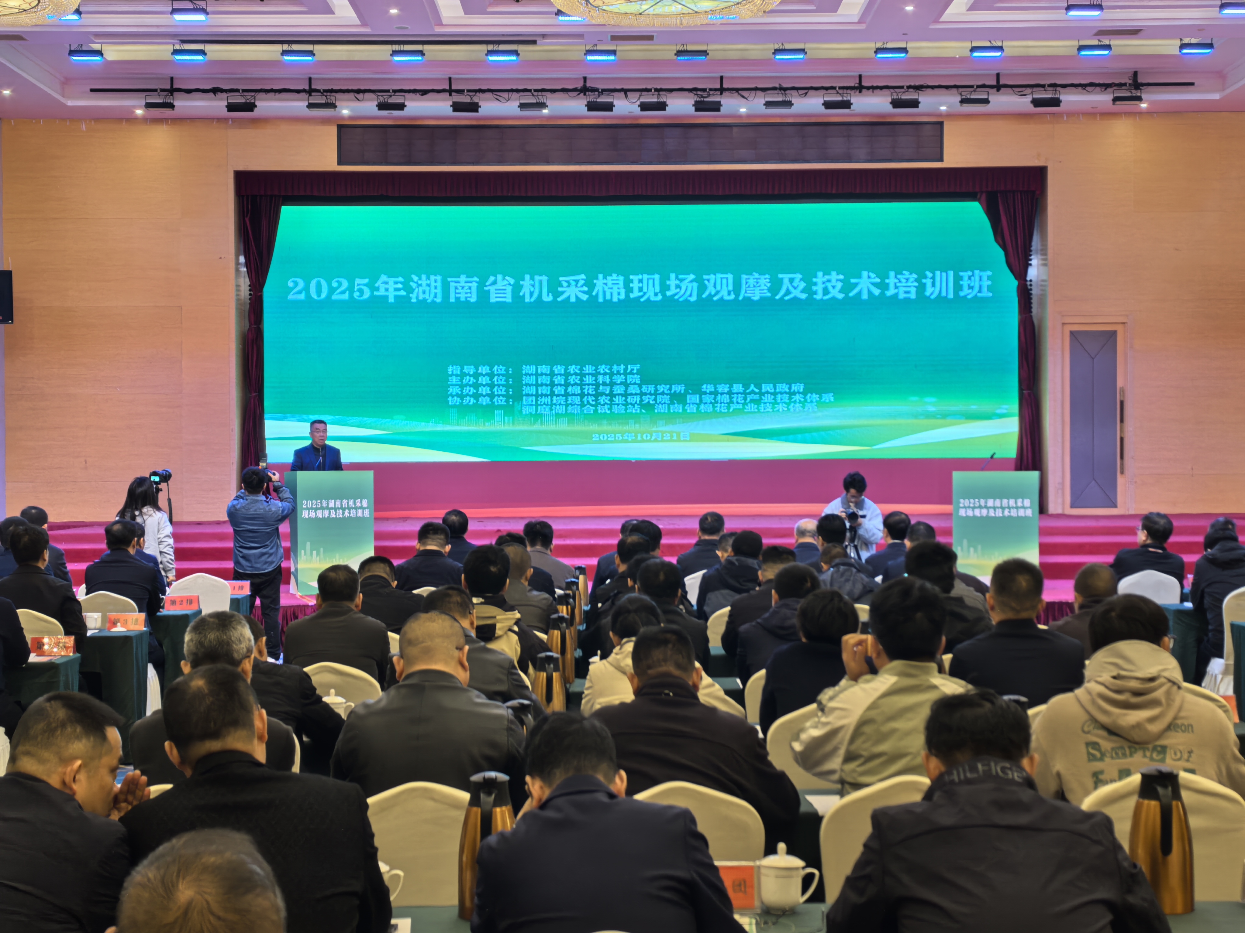 近日,2025年湖南省机采棉现场观摩及技术培训班在岳阳市华容县举办。本次活动围绕机采棉新品种和农机农艺配套最新成果开展技术培训,旨在加快推进全省棉花生产全程机械化进程,助力棉花产业高质量发展。 会上,专家们积极开展交流并提出,要稳步推进棉花产业向规模化、轻简化、机械化、高端化、智能化方