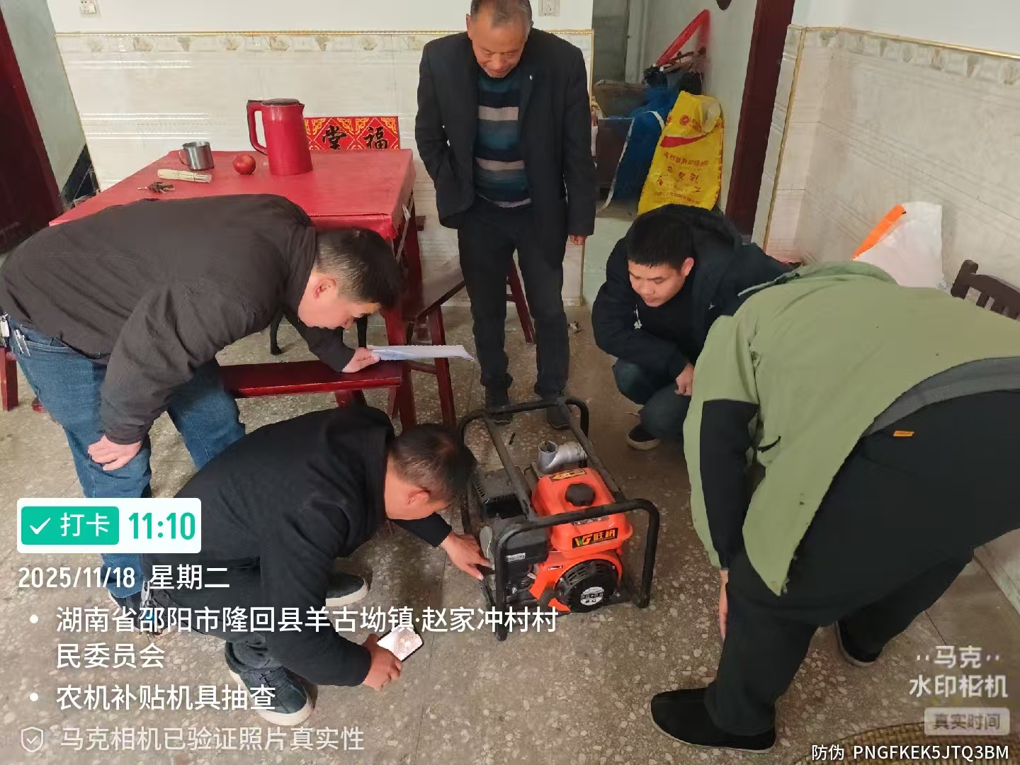 连日来,湖南省邵阳市隆回县农业农村局组织人员接续开展农机补贴机具抽查,确保农机购置与应用补贴政策落地见效和资金安全。 11月18日,在羊古坳镇龙家湾村,工作人员重点对2023年以来特别是2025年新购置的补贴机具到田间地头和农户家中,就机具购置的真实性,机具名称、生产企业、型号、发动机号、出厂编号等