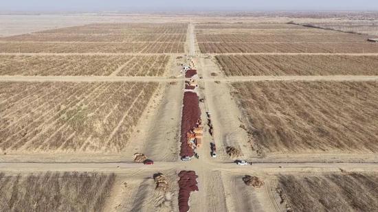 眼下,塔克拉玛干沙漠南缘的洛浦县红枣丰收正酣,各乡镇枣园陆续进入采收期。12月1日,在拜什托格拉克乡4000亩“中枣1号”红枣基地,红彤彤的枣果挂满枝头,村民分工协作,敲枝、拾果、筛选、装箱,现场井然有序,呈现一派丰收景象。据种植户介绍,采收工作预计将在15天内全部完成。 洛浦县拜什托格拉克乡4