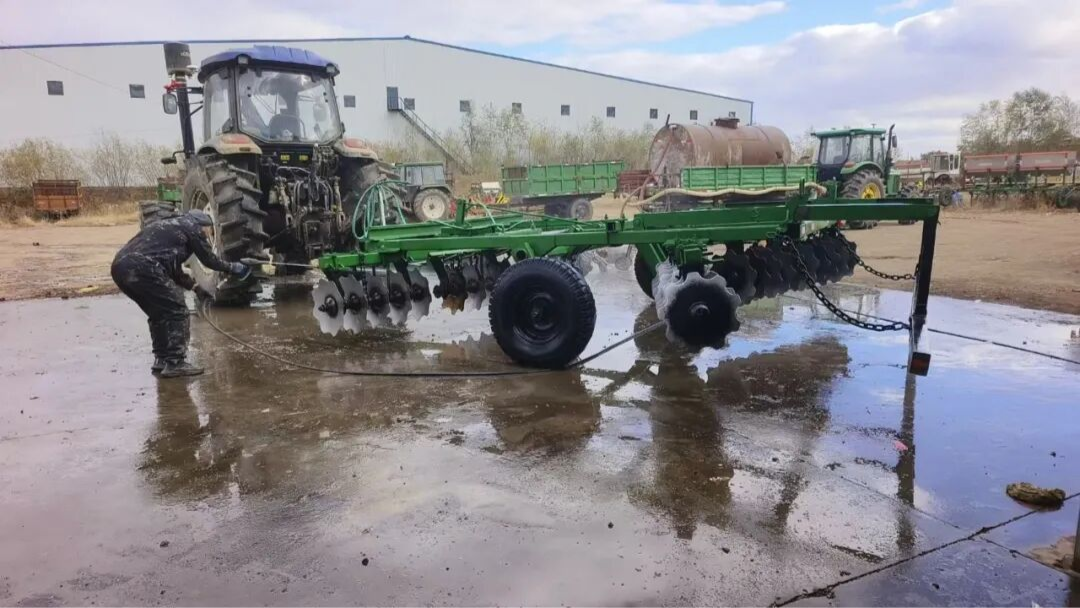 秋收结束后,北大荒农业股份八五四分公司“铁骑主力军”农机具迎来了“休整期”,种植户正忙着对其进行全面清洗与初步保养,为农机“健康越冬”保障明年春季农业生产筑牢基础。 清洗农机具(展宏云 摄) 为高标准推进收割机等农机具的冬季封存工作,分公司聚焦规范化管理,在农机清洗、停放、保养各环节严格把关,执行