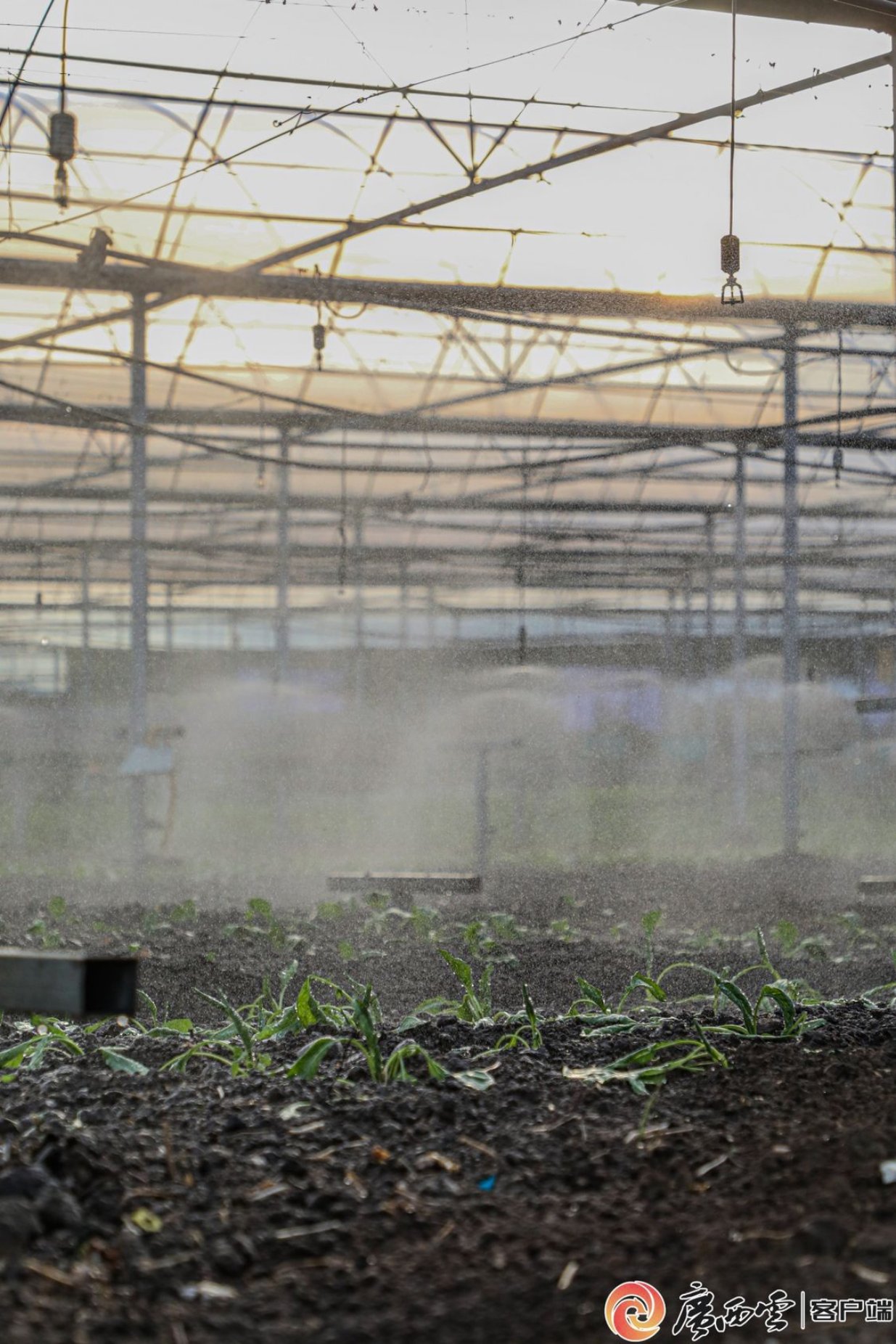 11月27日,在广西桂林市灵川县众联生态庄园的现代农业大棚内,雾化喷淋设备正在为作物补水保湿。棚内自动化设施与连片作物相映成趣,标志着当地智慧农业种植模式已进入常态化运营阶段,既提升了作物管护效率,也为秋冬蔬菜稳产保供筑牢了技术支撑。 雾化喷淋设备正在为作物补水保湿。阳海翔 摄 农户在蔬菜棚里清