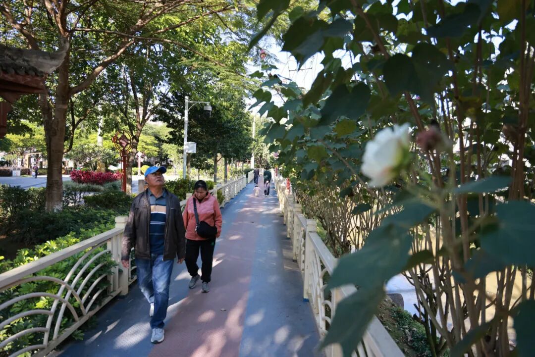 原标题:冬至时节:芙蓉花开笑迎客 冬天,一米阳光洒落肩头,裹挟着百花余韵。在墨江城区一号桥公园的河道廊道旁,数十株芙蓉花悄然盛放。粉、紫、白三色花朵缀满枝头,宛如无数盏精巧的绢花灯笼,引得过往行人驻足观赏,为初冬的小城平添了一抹亮丽色彩。 放眼望去,木芙蓉不似春桃般喧闹,不及夏荷般清