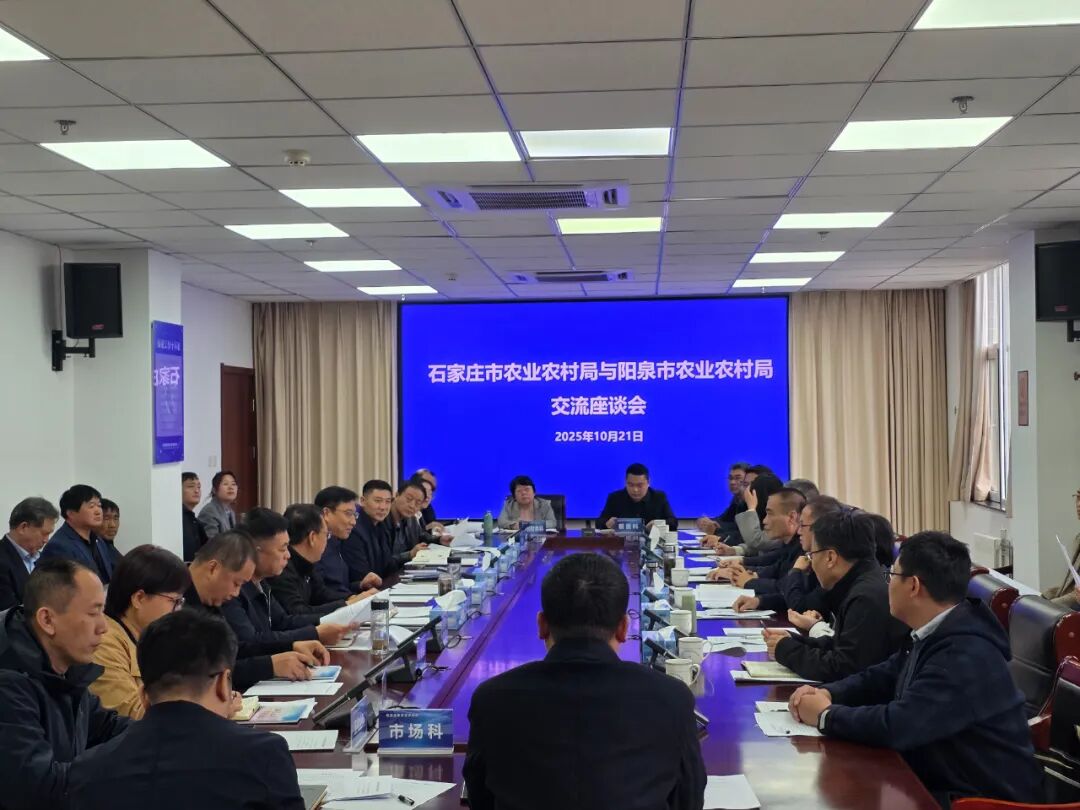 10月21日,为进一步落实《河北省石家庄市 山西省阳泉市跨市协同发展工作机制》和两市政府工作会谈精神,发挥石家庄都市圈辐射带动作用,加快实现跨区域农业农村协同发展,山西省阳泉市农业农村局局长闫立彪带队一行18人到我市考察交流富硒产业发展工作。我市农业农村局党组书记郭建强、局长刘亚红陪同考察并主持召开