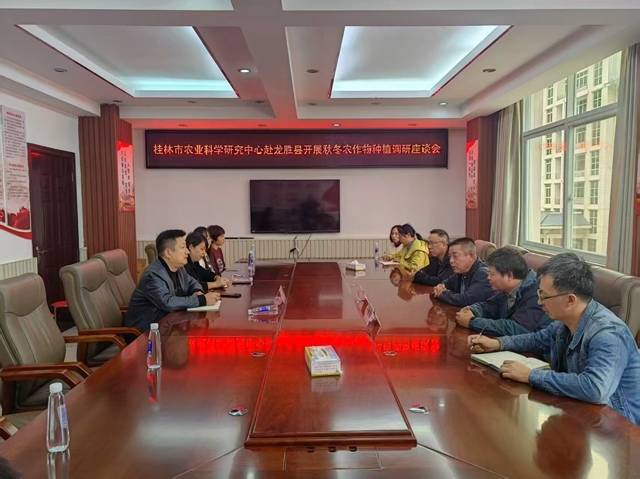 为发挥农业科技服务农业生产助力乡村振兴,10月24日,桂林市农业科学研究中心主任李家文,带领中心龙胜乡村科技特派员团队,到龙胜各族自治县开展秋冬农作物开发调研,走访了高山农作物种植基地,观察记录当地秋冬农作物种植现状及种植条件,并与龙胜农业农村局座谈,为龙胜农业冬种和产业提质增效建言献策。 座谈会上