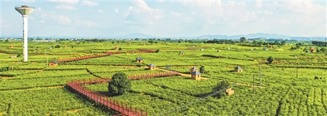 广西横州市大片茉莉花田(资料照片) 《瞭望》新闻周刊记者曹祎铭/摄 ■2017年4月,习近平总书记在广西考察时指出:“加强农业科技创新和推广,夯实粮食安全基础,延伸农业产业链,着力发展高附加值、高品质农产品,提高农业综合素质、效益、竞争力。要扶持新型农业经营主体,培养造就新型农民队伍,把现代特色农业