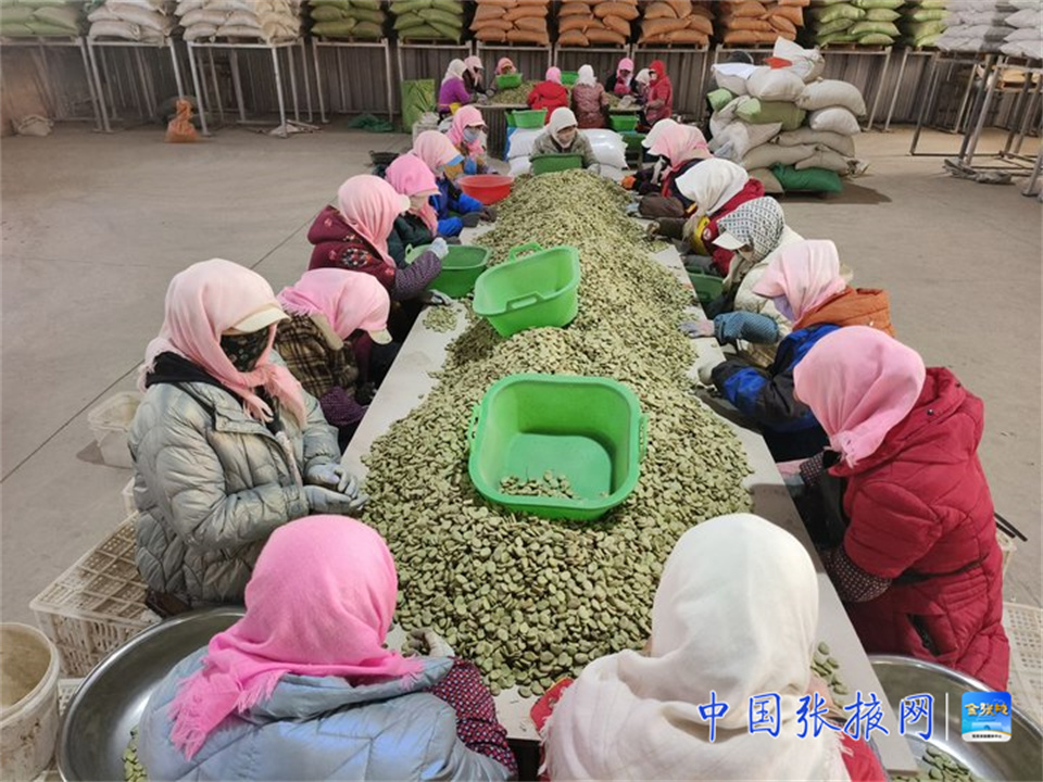 中国张掖网民乐讯 时下,走进民乐县洪水镇刘总旗村的甘肃浙民农业有限公司生产车间,一派热火朝天的忙碌景象映入眼帘,村民们围坐在分拣台前,双手翻飞间,一颗颗饱满的蚕豆被精准分类,装入不同的容器。这忙碌的身影背后,是洪水镇依托蚕豆产业铺就的乡村振兴增收路。   依托得天独厚的气候条件与沙壤