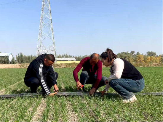 眼下,拜城县22.38万亩冬小麦进入出苗后管理的关键期。当地农业技术推广部门组建了专项服务团队深入田间,开展精准指导,为冬小麦安全越冬、来年丰产打牢基础。 10月24日,在拜城县亚吐尔乡喀孜干村的麦田里,农技专家围绕冬小麦出苗率、株高、病虫害防治等关键指标,为种植户开展了实操指