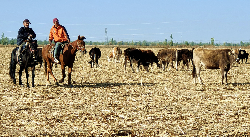 11月17日,秋收后的玉米秸秆地,成了察布查尔县牧民的农区“放牧天堂”。华岩明 摄 11月17日,察布查尔县牧民赶着牛群在玉米秸秆地放牧。华岩明 摄 中新网新疆新闻11月21日电(华岩明 丽娜)伊犁河谷初冬,在新疆察布查尔锡伯自治县广袤田野间,玉米收割刚刚结束。一捆捆秸秆饲料包整齐码放,如大地之