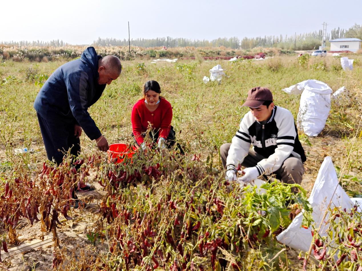 金秋时节,新疆英吉沙县乔勒潘乡的5000余亩色素辣椒迎来丰收。田间地头,鲜红的辣椒挂满枝头,村民们穿梭其间,忙着采摘、装运、晾晒,处处洋溢着丰收的喜悦。 村民采摘辣椒 (麦麦提艾力 摄) 在哈萨克拉艾日克村千亩辣椒种植基地,成片的辣椒果形饱满,色泽鲜艳,红色素含量丰富。采收前,基地就对接好订单,实