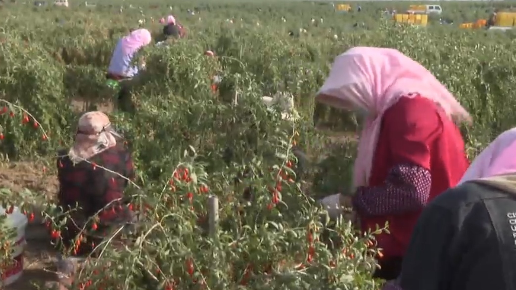 金秋时节,宁夏中宁县太阳梁乡的秋枸杞进入采收关键期。作为当地的特色支柱产业,枸杞种植不仅让千余名群众实现“家门口”就业增收,更以蓬勃发展的态势,为乡村振兴注入持续动力。 在太阳梁乡隆原裕民枸杞专业合作社的种植基地,鲜红饱满的秋枸杞挂满枝头,千余名采收工人穿梭于田间,双手灵活地采摘果实,采收