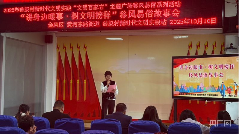 央广网银川10月17日消息(记者李畅 实习记者杨佳)10月16日,宁夏银川市金凤区黄河东路街道砖渠村新时代文明实践站,“讲身边暖事·树文明榜样”移风易俗故事分享主题活动温情启幕。开场舞《开门红》点燃现场氛围,村民们围坐一堂,在文艺表演、知识互动与榜样表彰中,感受移风易俗新风尚。 文艺表演环节,男女二