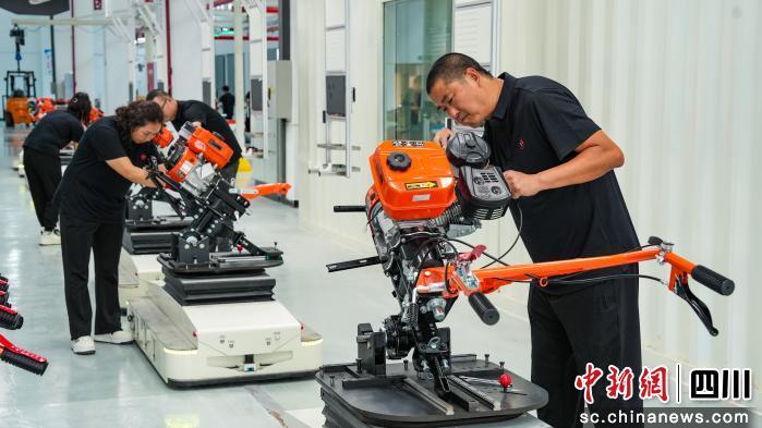 中新网四川新闻10月23日电 (张立祥)秋播秋种,农机先行。近段时间,四川巴中平昌经开区巴山方润农机公司生产车间内,机器轰鸣不断,生产线满负荷运转。工人们在装配线高效作业,拧螺栓、装部件,1.48米×0.95米的“四方牌”微耕机陆续下线。 四川巴山方润农用机械制造有限公司生产车间一角。 平昌县