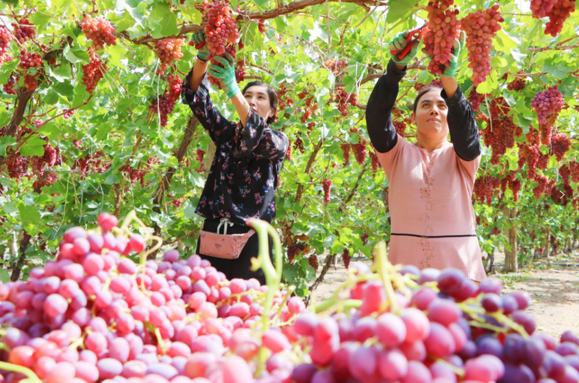 初秋时节,硕果盈枝。这几天,新疆铁门关市的2.7万亩葡萄园迎来丰收季,在阳光的照耀下,晶莹剔透。农户们忙着采摘、分拣、装箱动作娴熟,准备发往上海、广东等地,脸上的笑容与满园硕果相映,勾勒出一幅丰收的喜人画卷。(刘万乐) 来源:中新网兵团