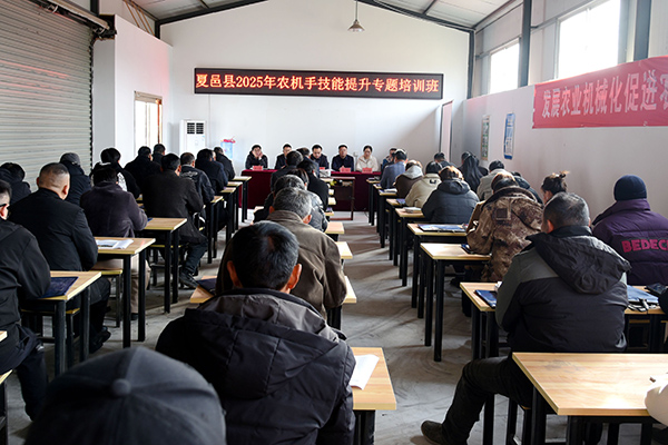 本网讯 12月2日 河南省商丘市夏邑县2025年农机手技能提升专题培训班开班。培训班为期12天,来自夏邑县各乡镇的50名农机合作社骨干、种粮大户及农业从业人员参训。夏邑县农广校校长项伟、农机中心主任申勇出席开班仪式并讲话,商丘市农业农村局三级调研员李艳、科教科长孟永超赴培