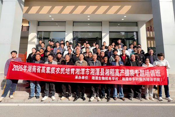 本网讯 12月3日,由湘潭县农业农村局主办、湘潭市乡村振兴培训学院(湘潭生物机电学校)承办的 2025年湘潭县粮油产能提升高素质农民培训班圆满结束。培训班为期7天,来自湘潭县的粮油经营主体、种粮大户、农民专业合作社骨干等50名学员参加培训。 本次培训立足“高起点谋划、高标准组织、