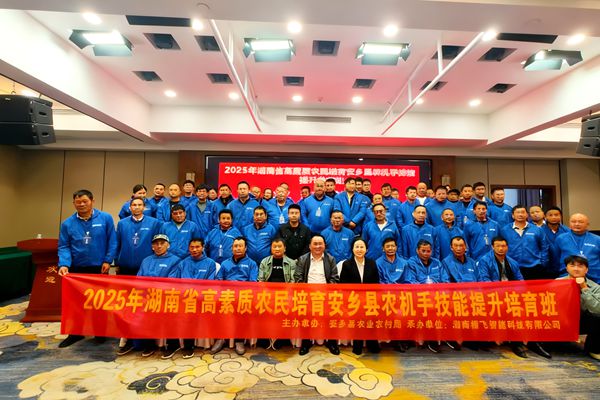 本网讯 11月22日,由汨罗市农业农村局主办、湖南精飞智能科技有限公司承办的2025年湖南省高素质农民培育汨罗市农机手技能提升专题培育班圆满结束。来自汨罗市各乡镇个体农机手、农机合作社成员及农业企业农机作业团队成员等50名学员参加培训。 培训班自2025年