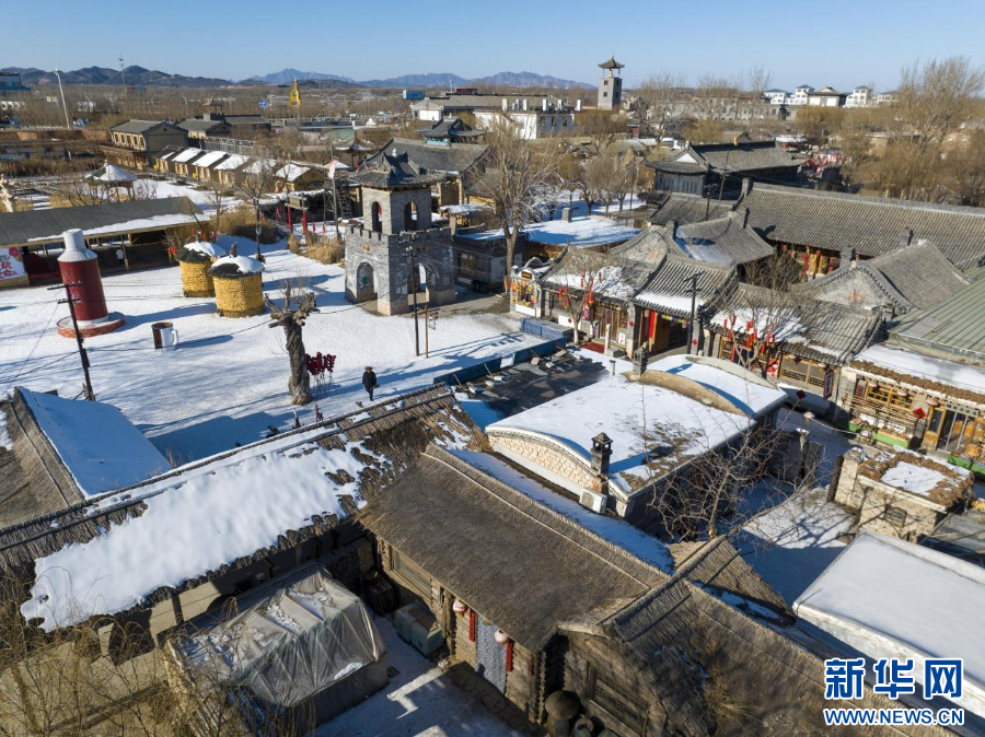 图为航拍葫芦古镇 酿老酒、做豆腐、包豆包、蒸馒头……1月3日,走进位于辽宁省葫芦岛市龙港区的葫芦古镇,浓浓的东北年味儿扑面而来。 据介绍,在这个冬季,葫芦古镇以“冰雪+民俗”“冰雪+灯会”等新场景为特色,推出近30场丰富多彩的循环表演,涵盖了东北的民俗文化和现代冰雪运动,让游客有了更多新鲜体